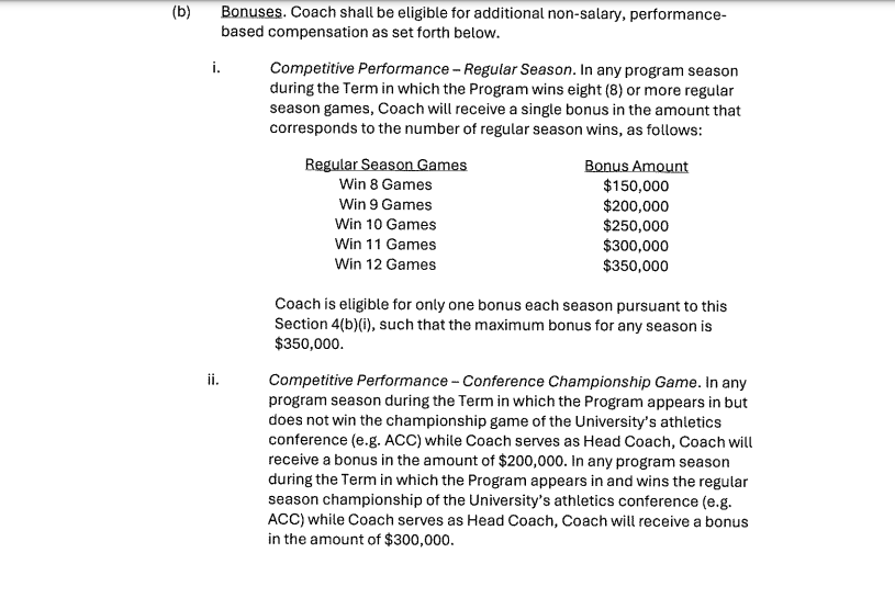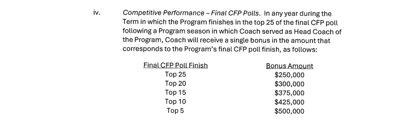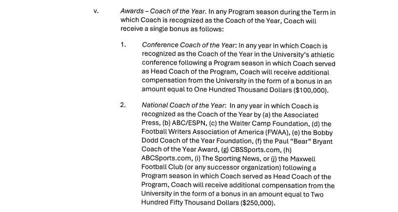 In terms of incentives, there are a bunch built into the contract with everything from wins to conference title game appearances to playoff appearances. Here is a look at the full list of incentives (click on the arrow to go through all of them).
